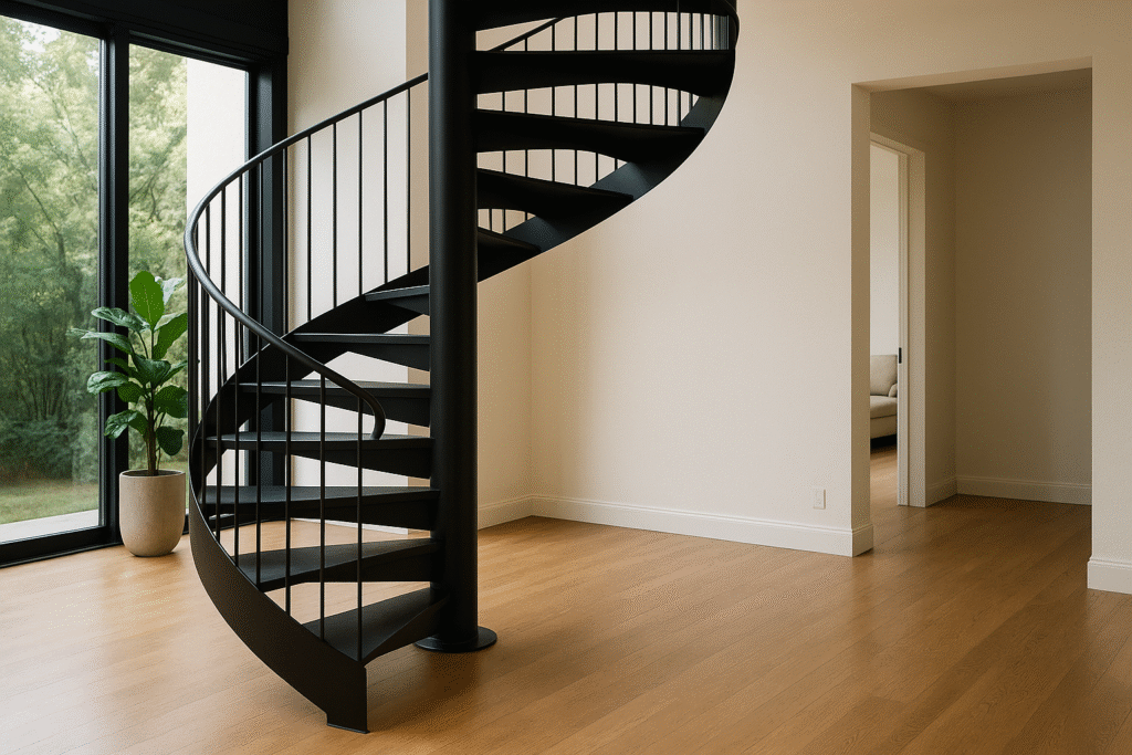 螺旋(らせん)階段は、建築とかになじみがない人でも、わりとメジャーな階段ではないでしょうか? 芸能人とかが住んでるおしゃれなメゾネットのタワマンにある、ぐるぐるしたアレです。