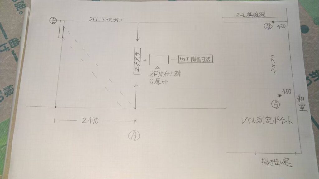 もともとリビングには隣接している和室への引戸があったのですが、今回どうしてもスケルトン階段を設置するうえで、その和室への扉を塞いでしまわなければならなかったのです(ちょうど設計図の「和室」とかかれば場所に引戸がある)。