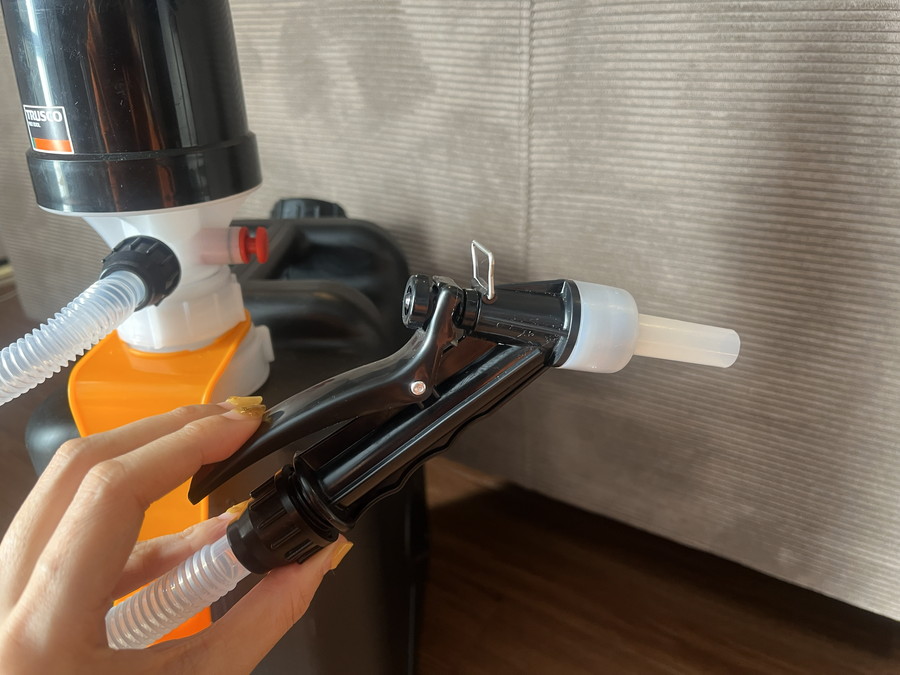 電動に比べるとポンプを押す手間はありますが、昔からある赤いサイフォンポンプに比べると各段にやりやすく、手も疲れません。