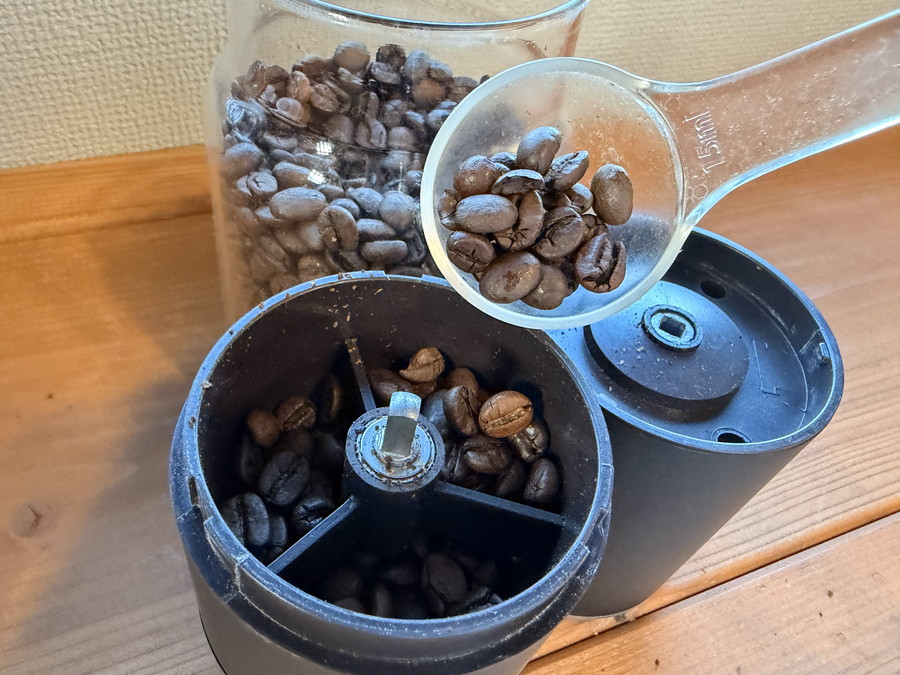 旦那の分も一緒に淹れるときには、2杯分を一気に挽くことも。朝の忙しい時間でも、手挽きより圧倒的にラク。挽きたてコーヒーのハードルが一気に下がりました。
