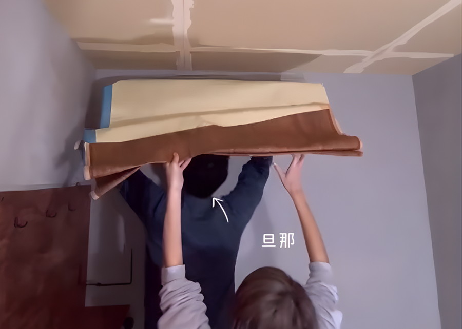 生のりのついた柔らかい壁紙を、一人で抱えて天井に貼れますか?