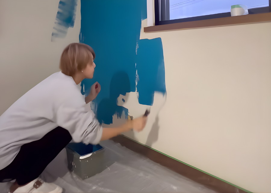 ここから実際に、既存の壁紙の上からペンキを塗ってアクセントクロスを作っていきます。